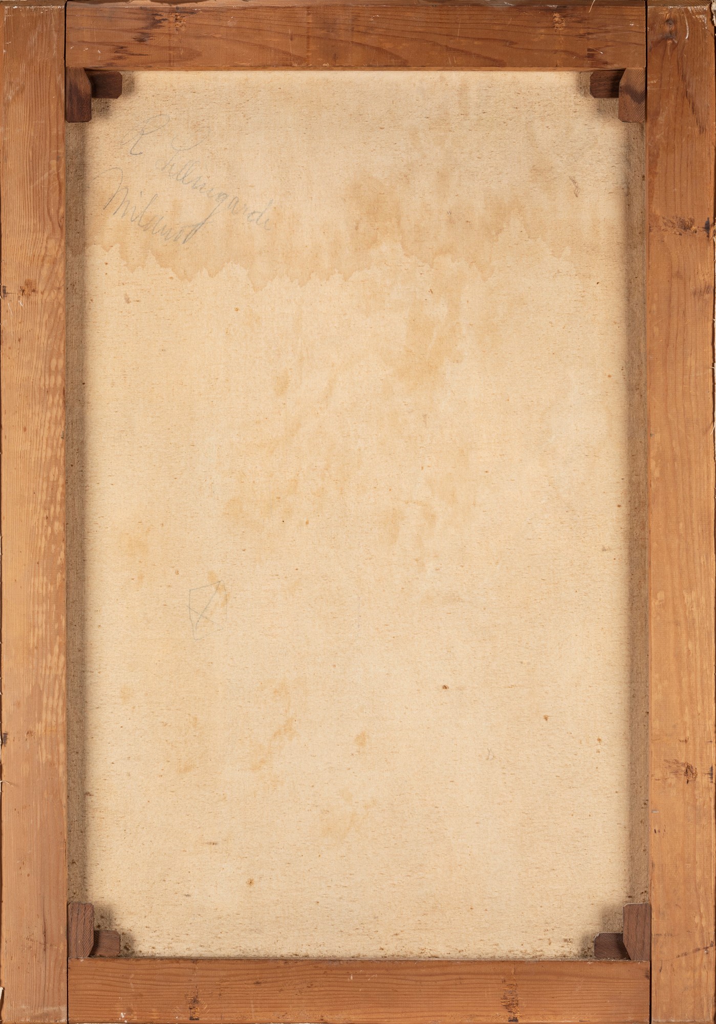 Sul retro, sulla tela, iscrizione relativa alla provenienza.