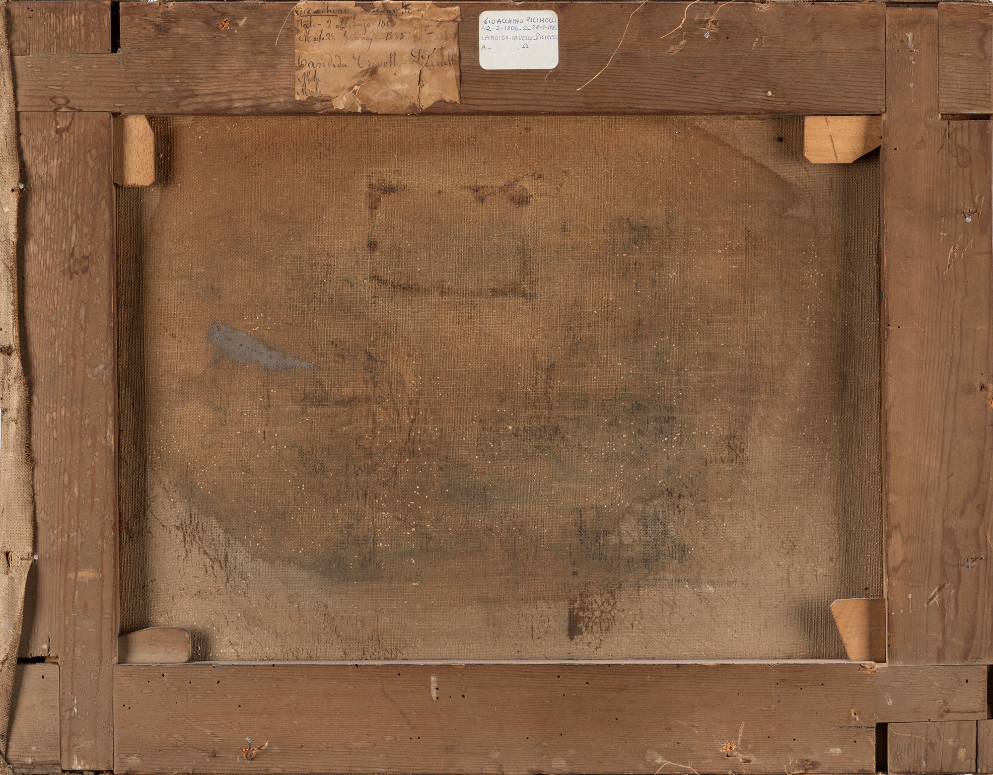 Sul retro, sul telaio, antica etichetta con iscrizione relativa agli effigiati.