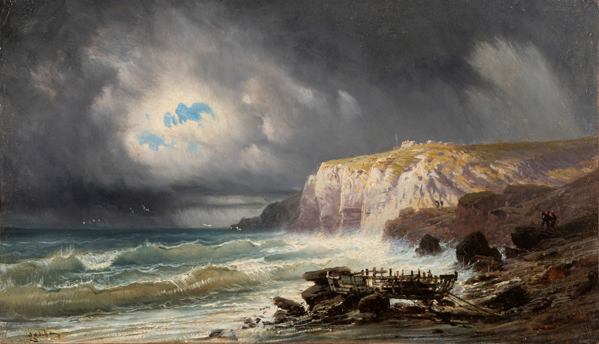 Eugenio Amus (Brescia 1834-Bordeaux 1899) - Mareggiata in Normandia