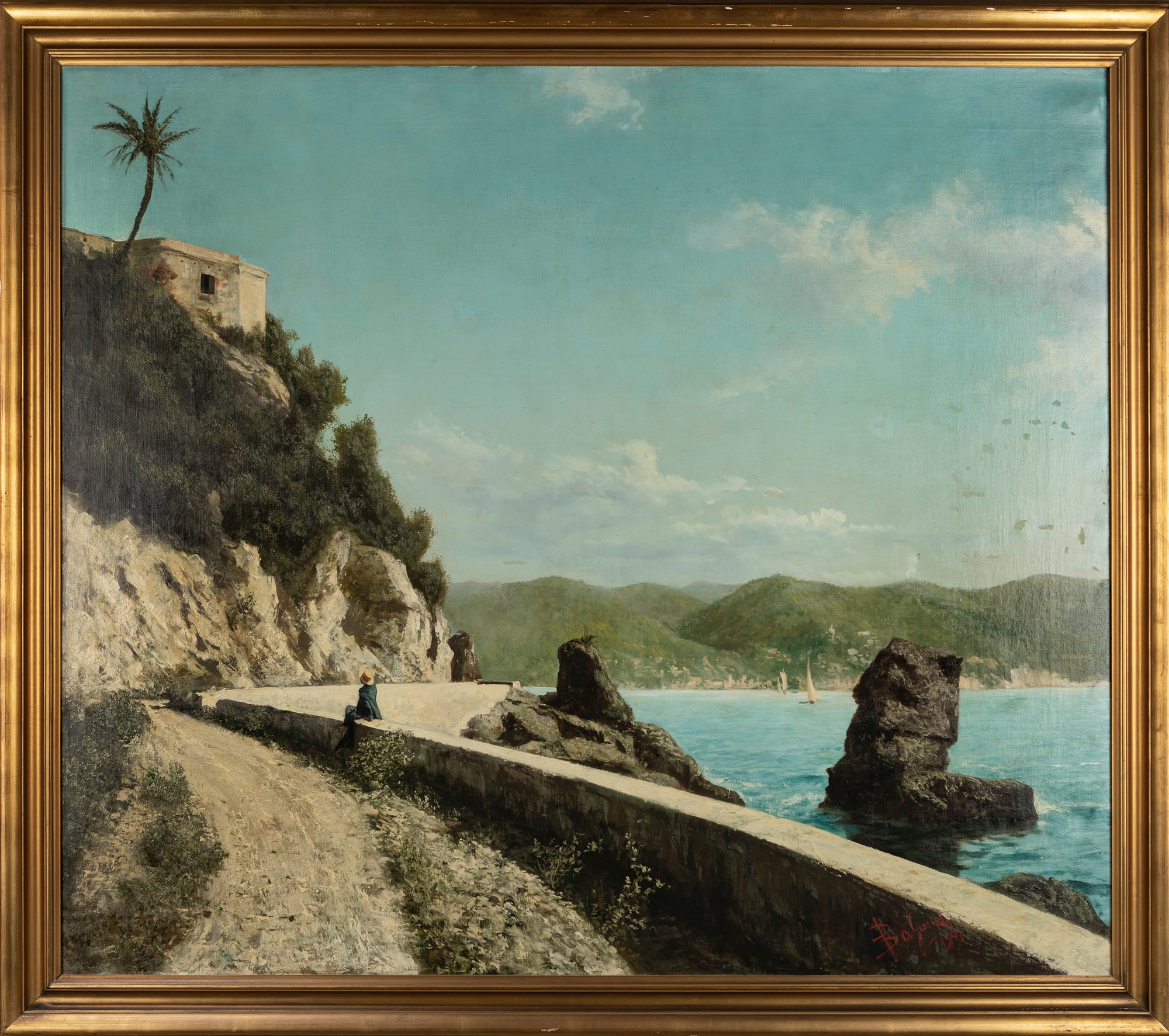 Giacinto Bo (Montanaro canavese 1832-Torino 1912) - La strada tra Santa Margherita Ligure e Portofino, 1891