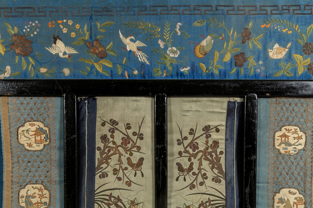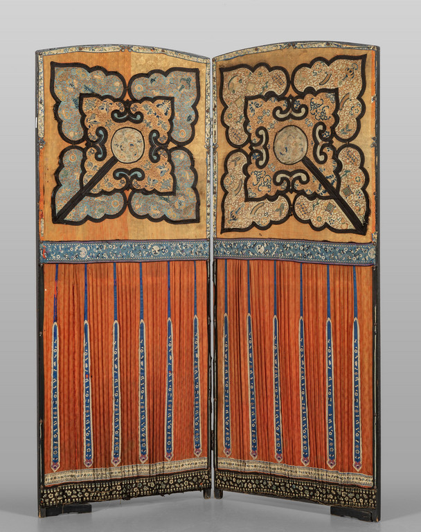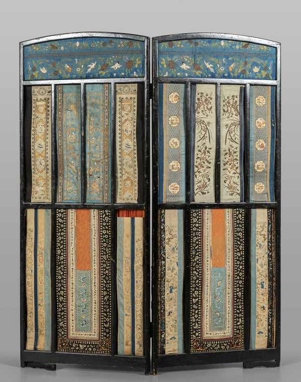 Paravento a due ante in stoffa ricamata, Cina sec.XIX