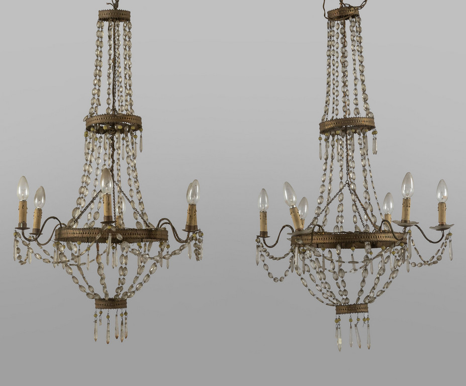 Coppia di lampadari a cestino a sei luci in