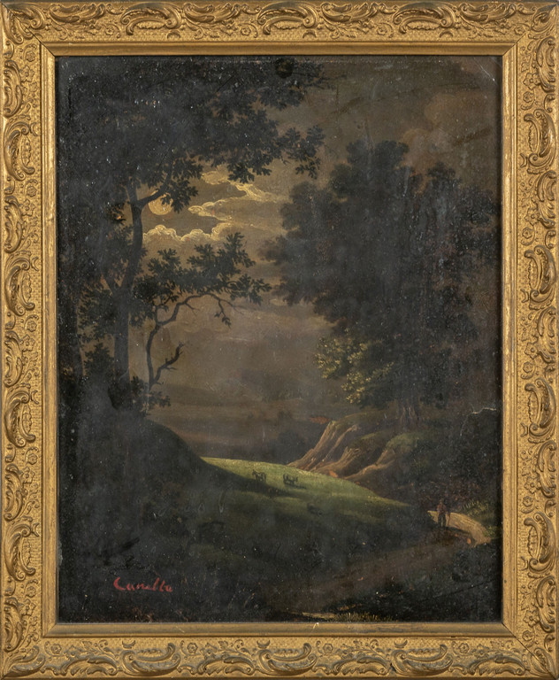 Scuola italiana sec.XIX "Plenilunio" olio, f.to