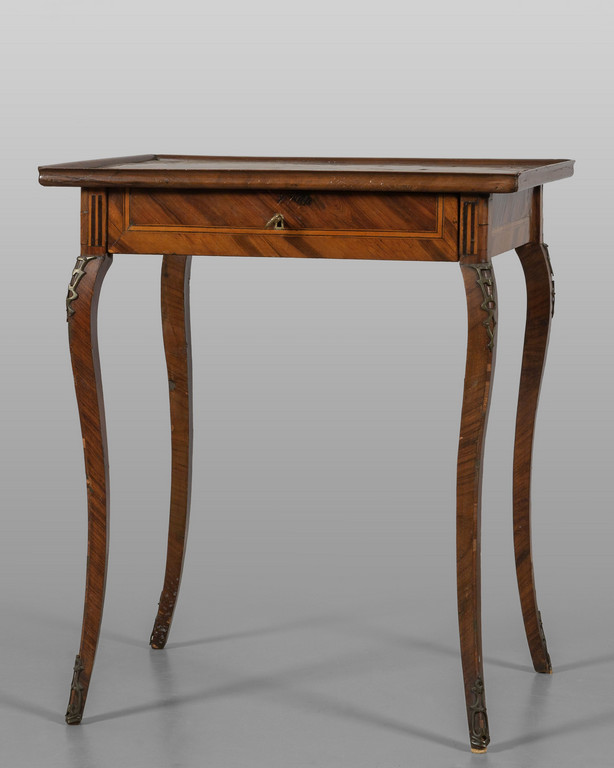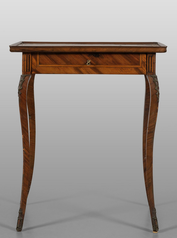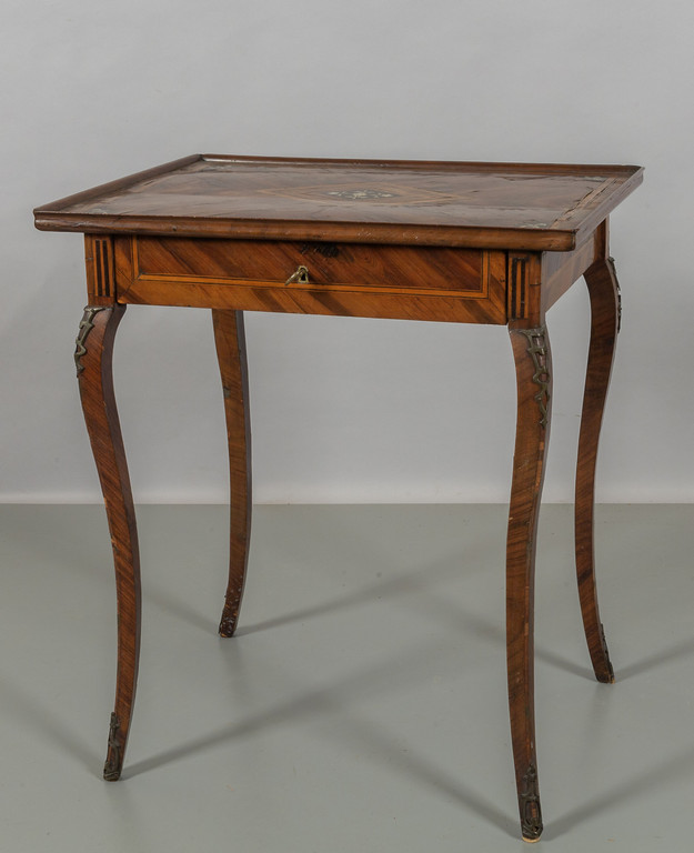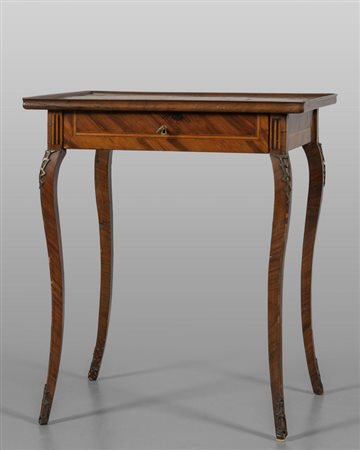Tavolino da centro con cassetto nella fascia, lastronato in palissandro con intarsi in madreperla, Piemonte sec.XIX