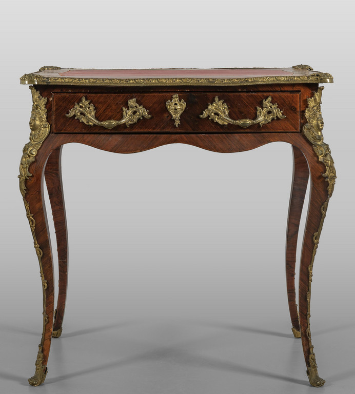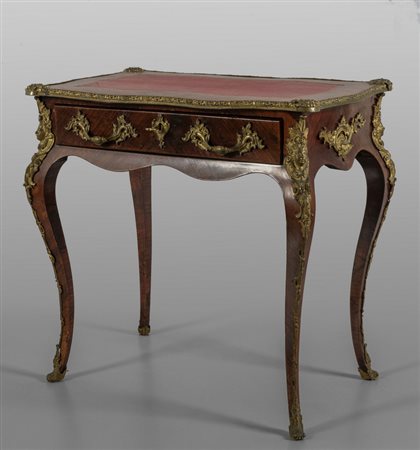 Tavolino Napoleone III lastronato in palissandro, un cassetto nella fascia, ricca decorazione in bronzi, Francia sec.XIX