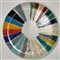 Piatto decorativo in ceramica smaltato in bianco, decorato con fasce policrome a raggiera e serie numerica incisa. Italia, seconda metà secolo XX. Siglato N G al recto. (d cm 36)
