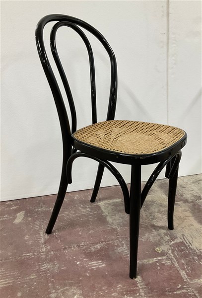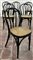 Sei sedie in legno curvato al vapore e dipinto di nero con seduta in paglia di