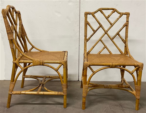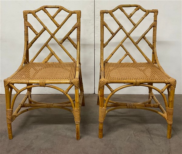 Coppia di sedie in giunco e manao scortecciato con seduta in paglia di Vienna. Italia, seconda metà secolo XX. (cm 51x92x48) (difetti)