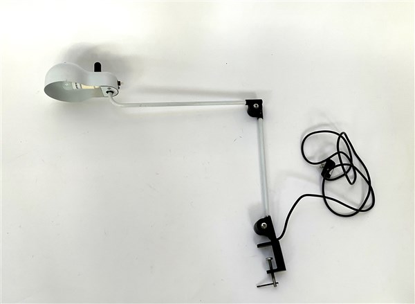 Lampada da tavolo modello "Topo". Produzione Stilnovo, Milano, 1970. Metallo verniciato bianco e nero. Etichetta cartacea. (h max cm 100) (lievi difetti)