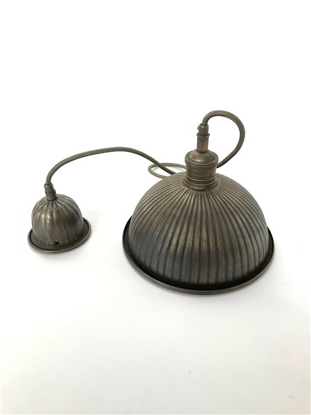 Lampada a sospensione in alluminio costolato. Italia, anni '60/'70. (h cm 120; d cm 24,5) (lievi difetti)