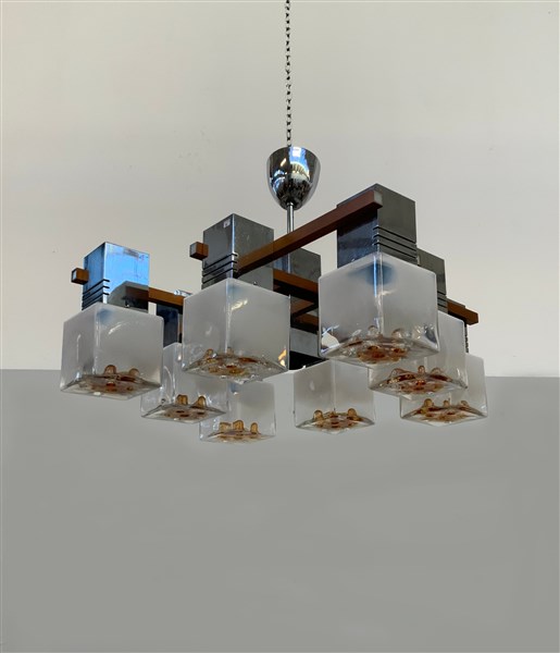 Gaetano Sciolari (Attribuito) Lampada a sospensione a nove con struttura in meta