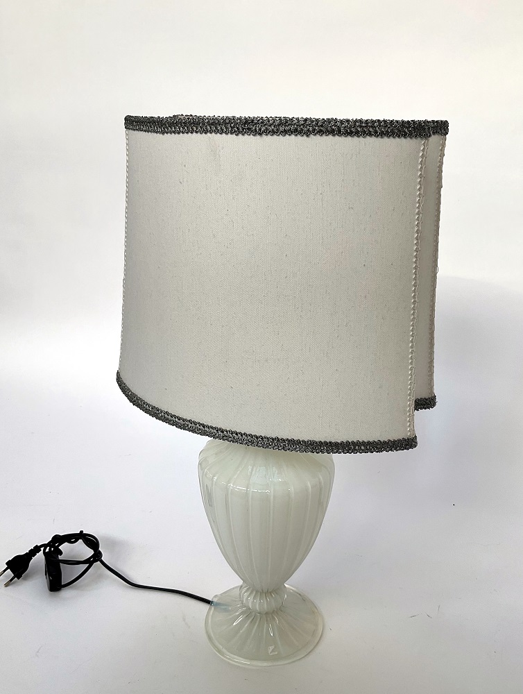 Manifattura di Murano Lampada da tavolo in vetro opalescente lattimo con paralu