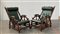 Coppia di poltrone con braccioli a guisa di timone, recanti targhe con iscrizio
