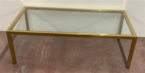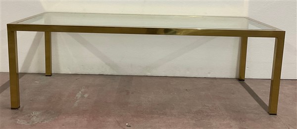Lot 266 | Tavolino da salotto con struttura in metallo dorato e piano in vetro (cm 120x39