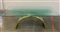 Tavolo con gambe tubolari curvate in metallo cromato di due tonalità, sostegni e piano in cristallo di forte spessore. Italia, anni '80. (cm 178x71x90) (difetti)