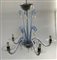 Manifattura di Murano. Lampadario in vetro soffiato trasparente incolore e blu