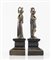 Coppia di sculture in bronzo raffiguranti figure femminili che sorregge...