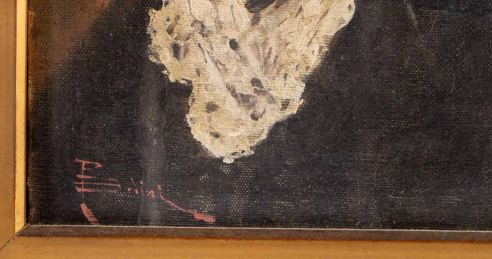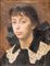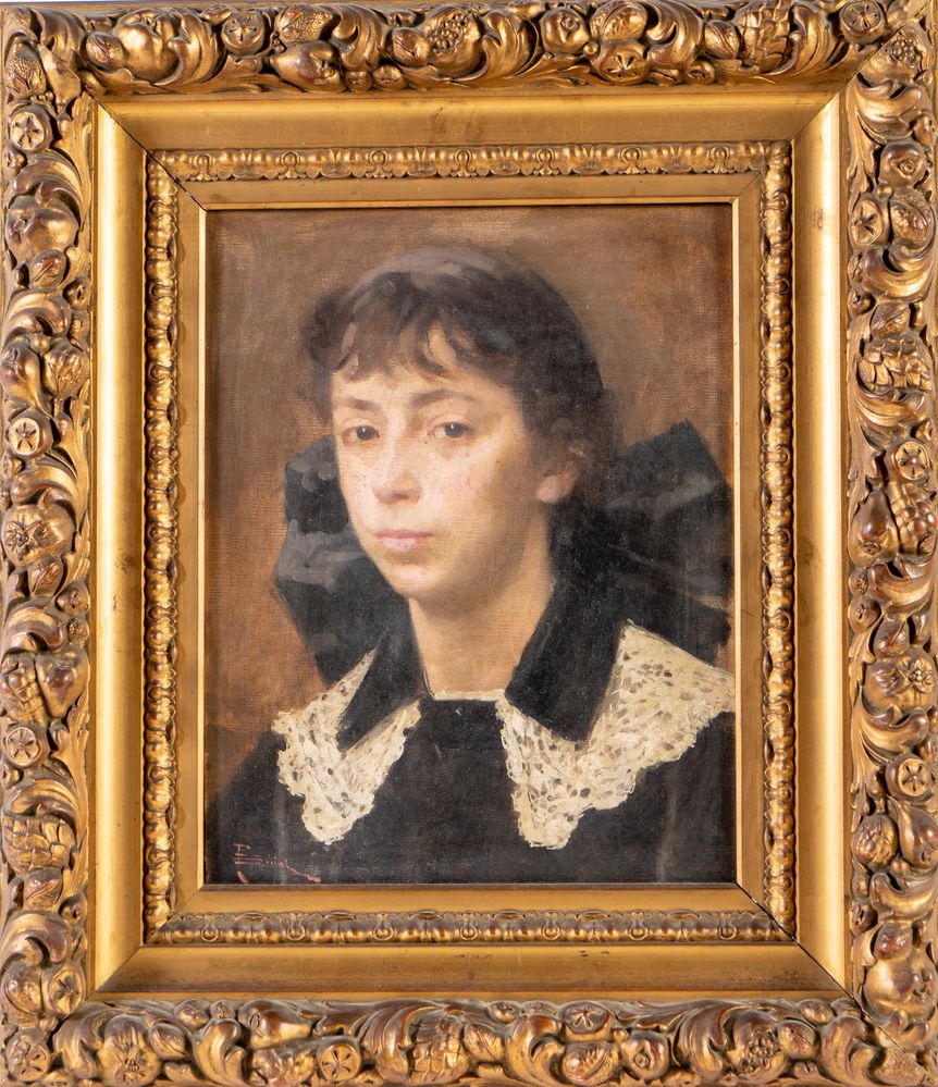 PAOLO BEDINI (Bologna 1844 - 1924) "Ritratto di fanciulla con fiocco nero", 1905-1915 ca. Olio su tela. Cm 40x31. Opera firmata in basso a sinistra P. Bedini.