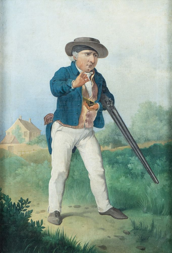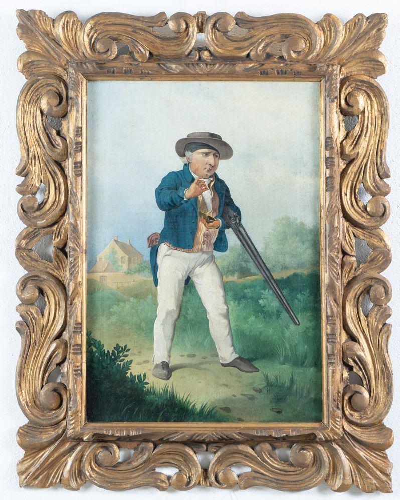 Maestro del XIX secolo. "Cacciatore". Olio su tela. Cm 70x49.