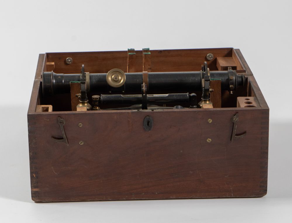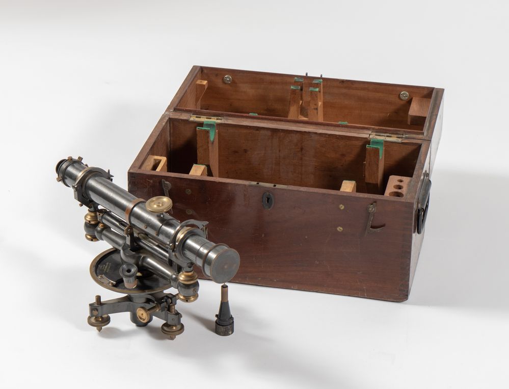 Teodolite, strumento di misurazione. Ing. A. Salmoiraghi, Milano, fine del XIX secolo - inizio del XX secolo. In buono stato di conservazione, conserva la sua cassetta originale. Cm 25,5x21x42,5.