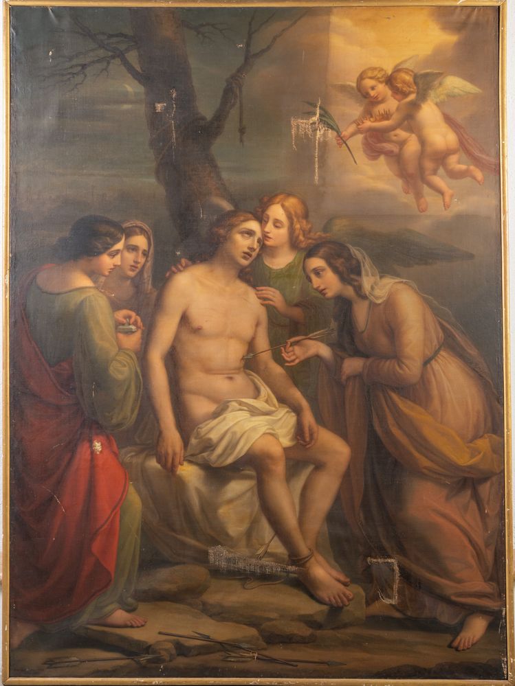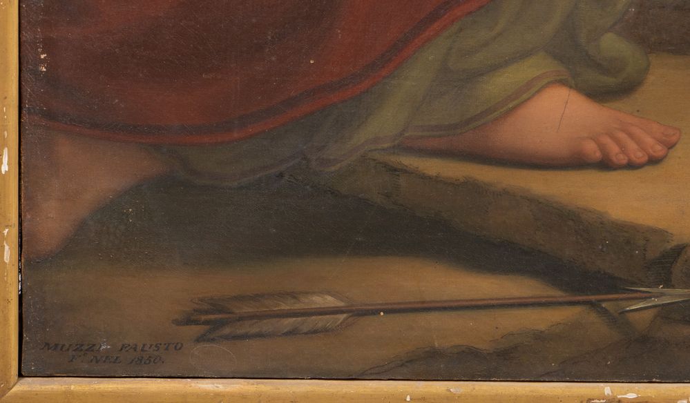 FAUSTO MUZZI (1801 - 1879) "San Sebastiano", 1850. Olio su tela. Cm 207,5x152. Opera firmata e datata in basso a sinistra Muzzi Fausto 1850.