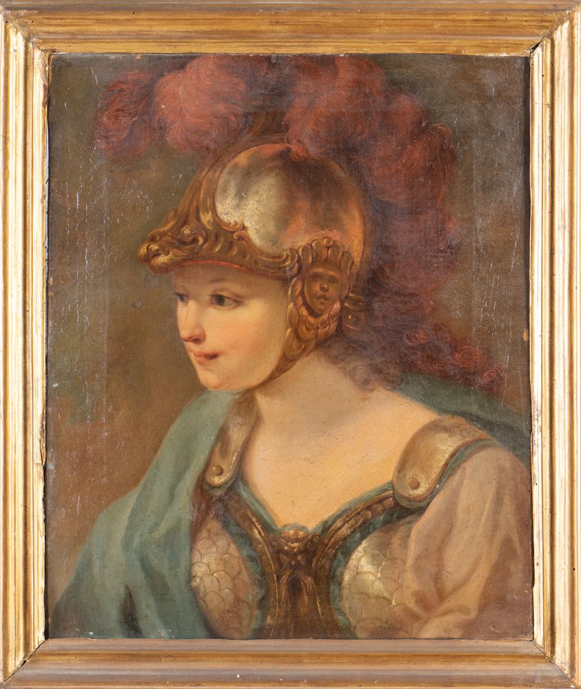 Maestro del XVIII secolo. "Minerva". Olio su tela. Cm 48x39,5.