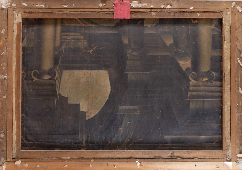 Maestro del XVII secolo. "Gesù che scaccia i mercanti dal tempio". Olio su...
