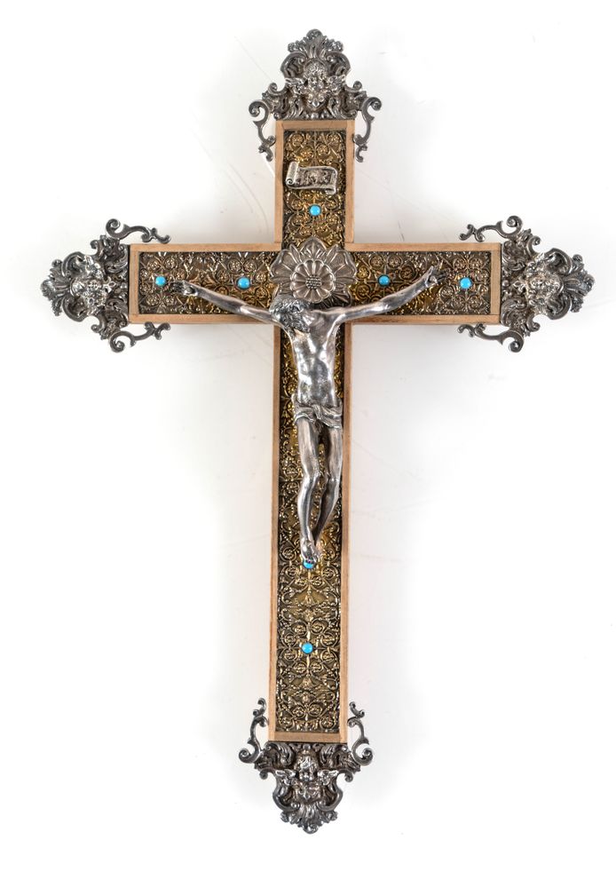 Lot 128 | Argentiere Stefani, Bologna, XX secolo. Crocifisso in argento, argento...