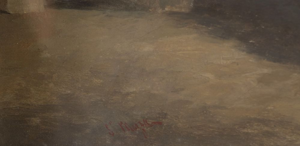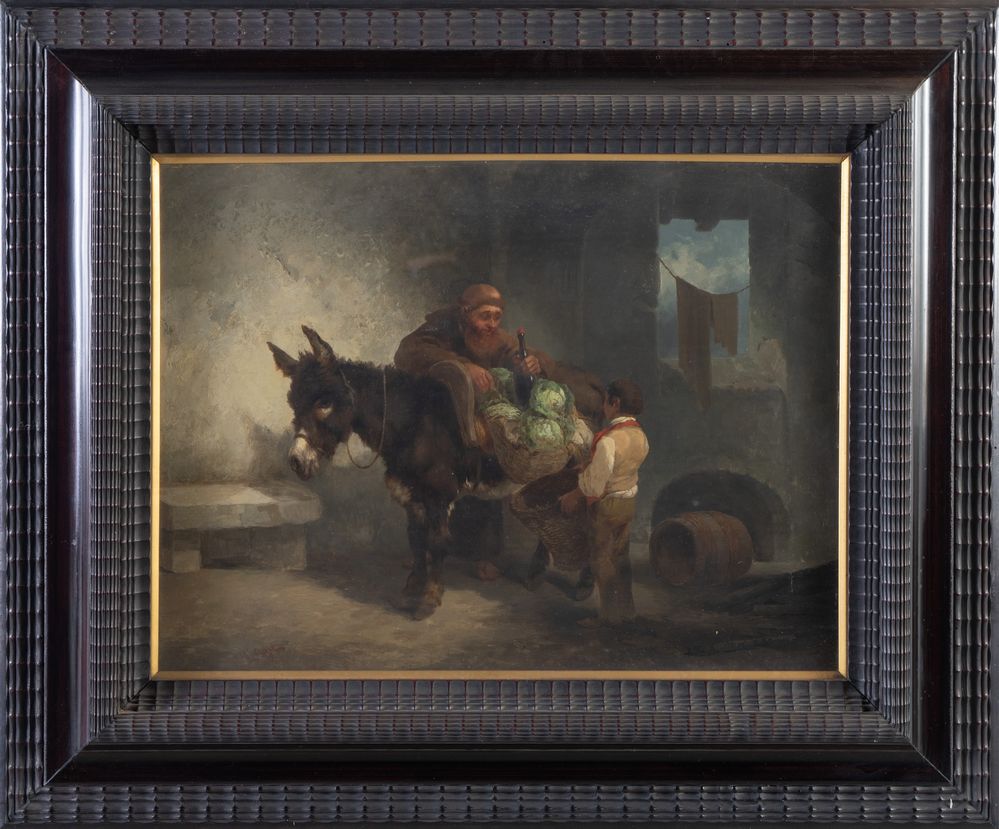 SALVATORE MAZZA (Milano 1819 - 1886) "Frate con asino". Olio su tela. Cm 47x62,5. Opera firmata in basso a sinistra S. Mazza.