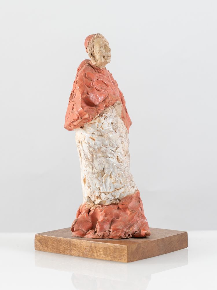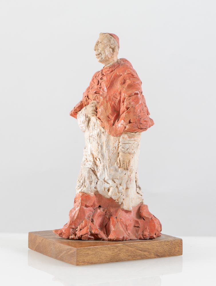 CLETO TOMBA (Castel San Pietro Terme 1898 - Bologna 1987) "Cardinale". Scultura in terracotta policroma. Cm 18,5x8x9,5. Al retro opera firmata Tomba. Al retro reca marchio CT. Sotto la base reca timbro della Galleria Giordani, Bologna.