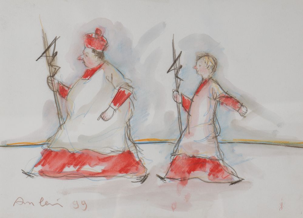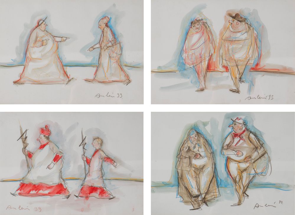 CARLO ANLERI (Vergato 1943 - 2015) Lotto composto da quattro tecniche miste su carta, anni '90. Cadauna di cm 23x32. Due opere sono firmate e datata in basso a destra Anleri '99. Un'opera è firmata e datata in basso a destra Anleri '93. Un'opera è datata e firmata in basso a sinistra Anleri '99.