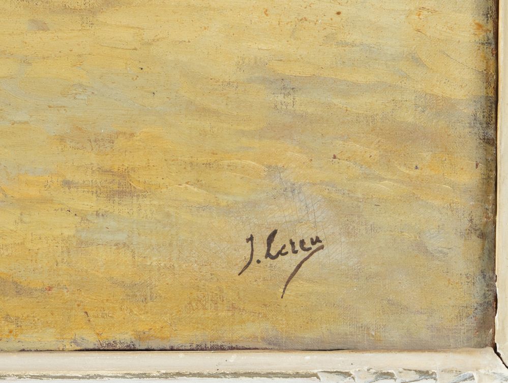 JEAN LEREU "Vieille France". Olio su tela. Cm 49,5x69. Opera firmata in basso a destra J. Lereu.