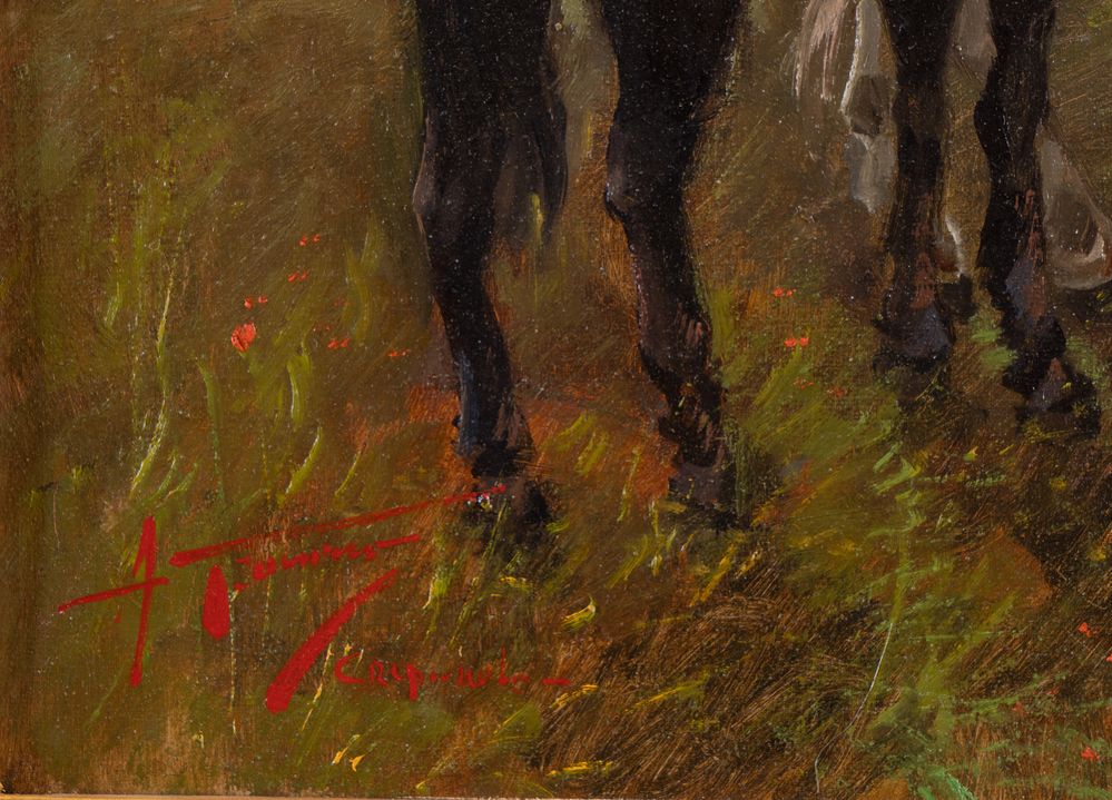 ANGIOLO TOMMASI (1858 - 1923) "Crepuscolo". Olio su tela. Cm 40x50. Opera firmata in basso a sinistra A. Tommasi.