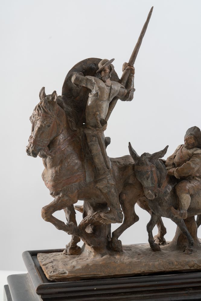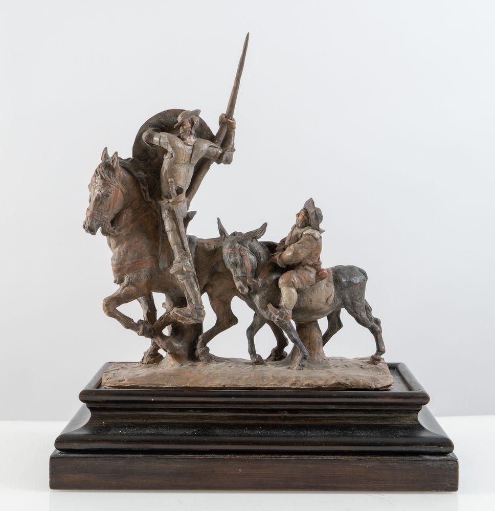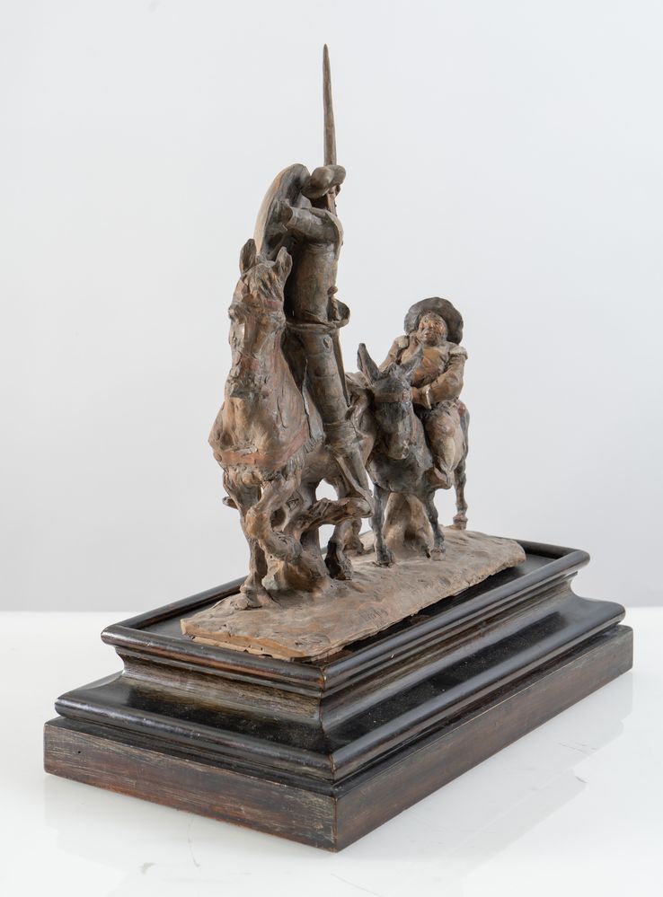 CLETO TOMBA (Castel San Pietro Terme 1898 - Bologna 1987) "Don Chisciotte", 1928. Scultura in terracotta policroma. Cm 41x35x13. Opera firmata e datata alla base C. Tomba 928.