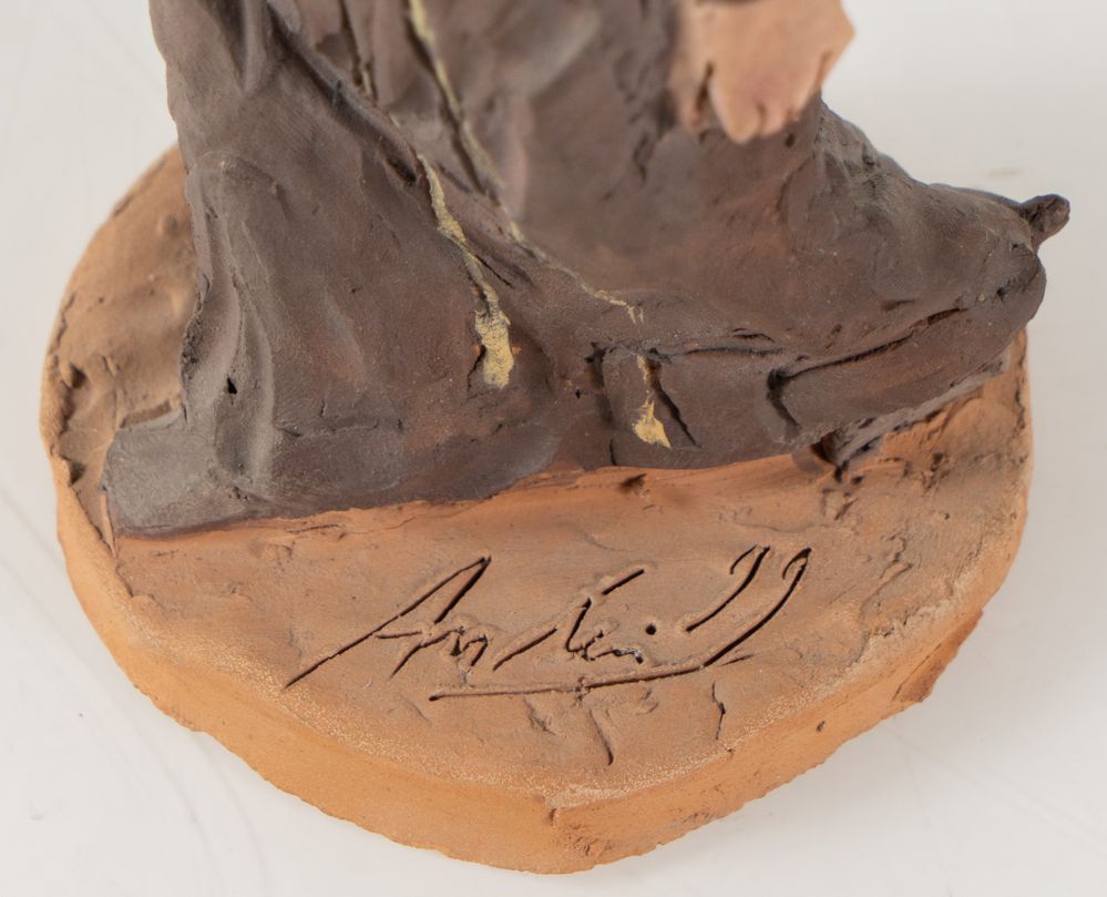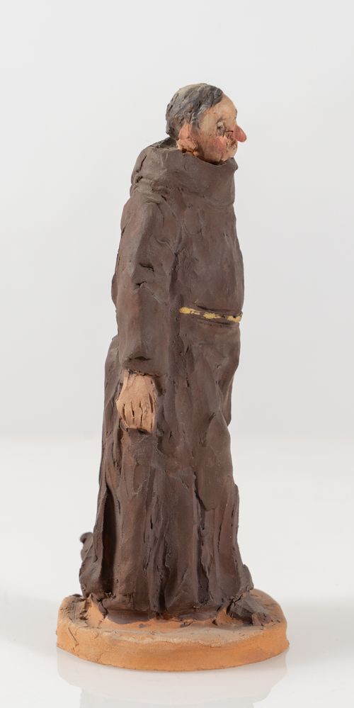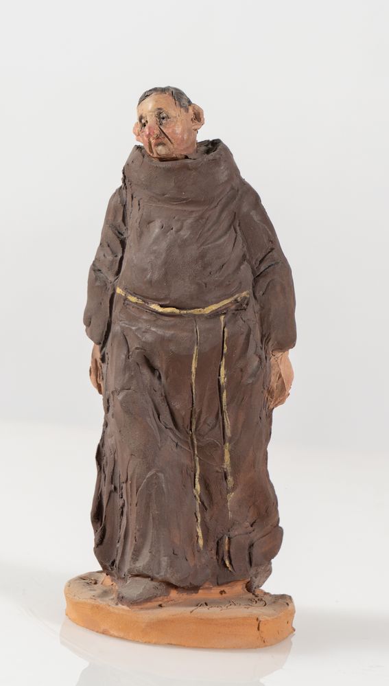 CARLO ANLERI (Vergato 1943 - 2015) "Frate", 1999. Scultura in terracotta policroma. Cm 20x8,5x9. Opera firmata e datata alla base Anleri '99.