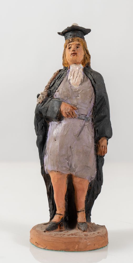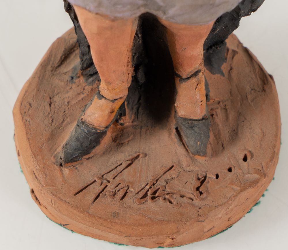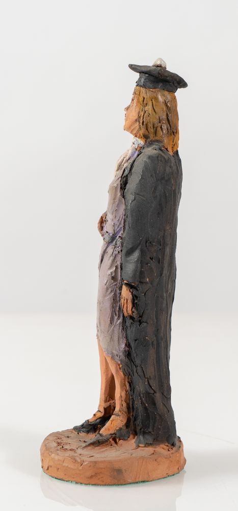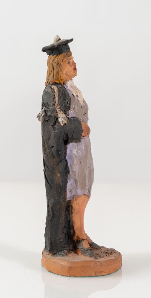 CARLO ANLERI (Vergato 1943 - 2015) "Avvocatessa", 2000. Scultura in terracotta policroma. Cm 21x7,6x7,3. Opera firmata e datata alla base Anleri 2000.