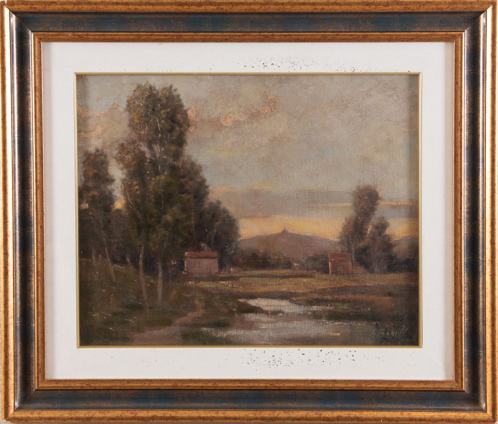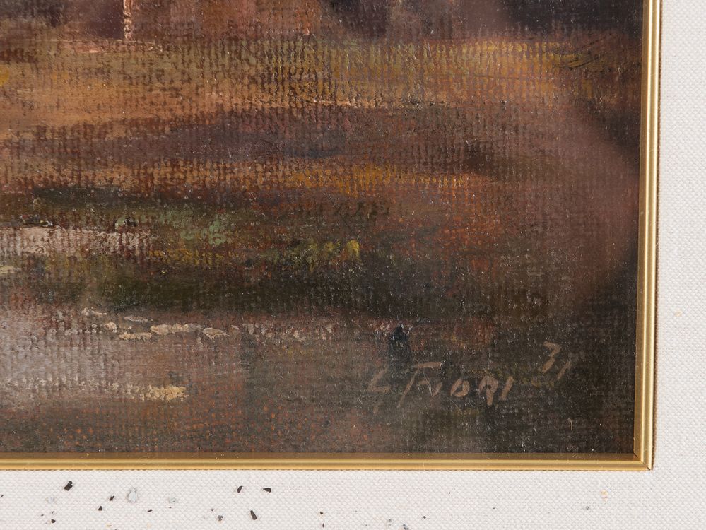 GIULIO FIORI (Bologna 1909 - 1991) "Paesaggio", 1971. Olio su tela. Cm 40,5x50,5. Opera firmata e datata in basso a destra G. Fiori 71. Al retro reca scritta per autentica a firma Giulio Fiori e a firma del figlio Piero Fiori.
