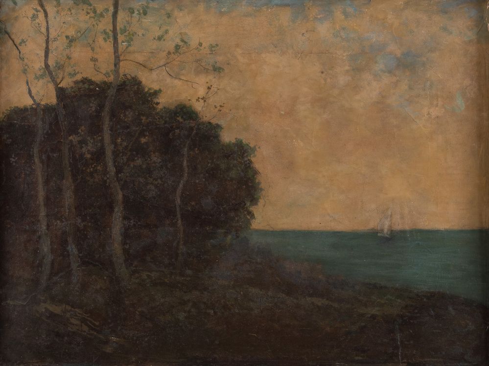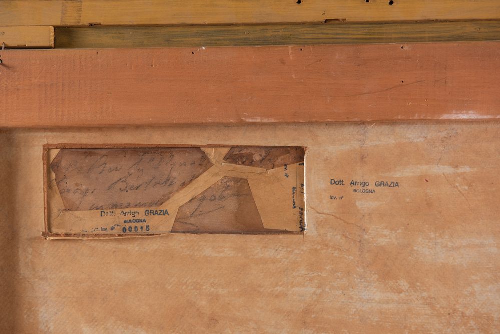 LUIGI BERTELLI (San Lazzaro di Savena 1833 - Bologna 1916) "Paesaggio". Olio e tecnica mista su cartoncino. Cm 47x62,5. Al retro opera firmata Luigi Bertelli.