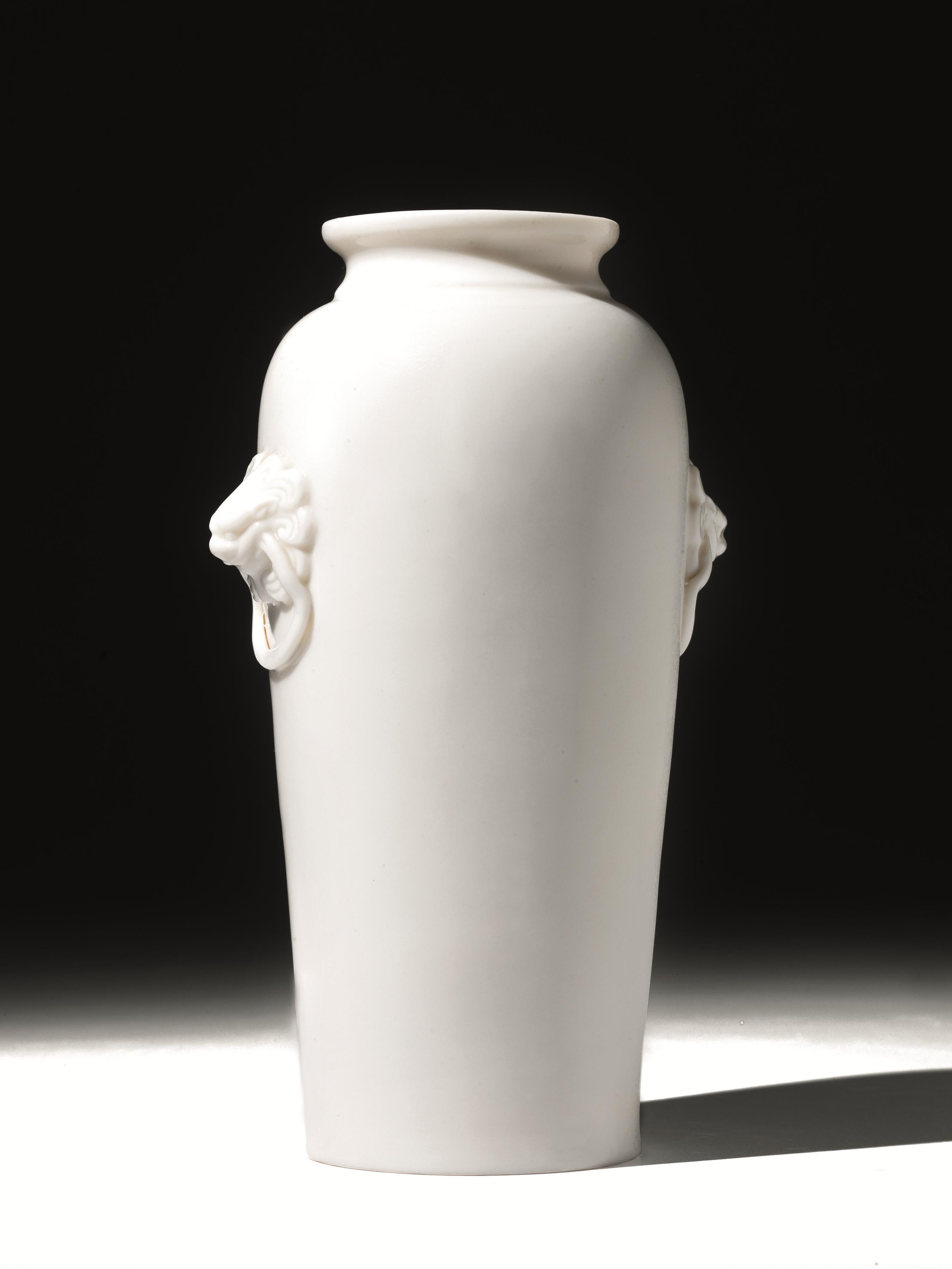 Vaso Cina, sec. XVII, in porcellana bianca Dehua, le anse a testeleonine con...