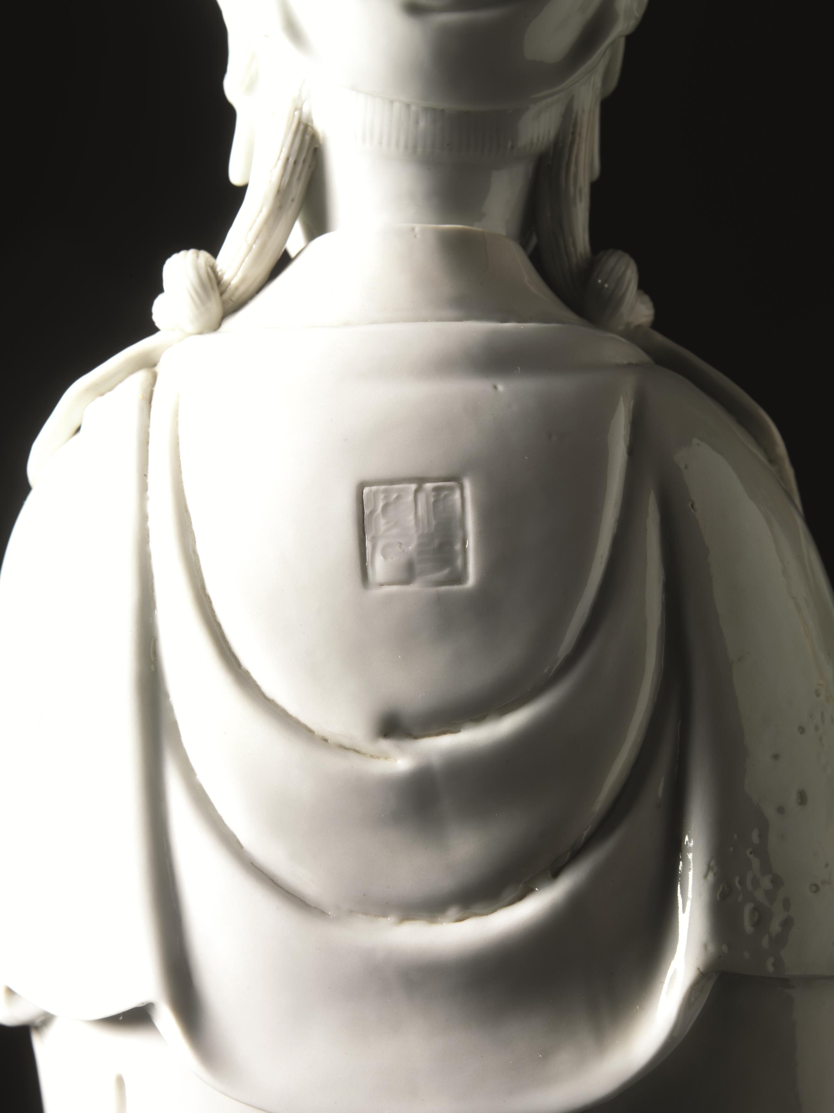 A white Dehua porcelain Guanyin, 19th c., Fisherman mark.