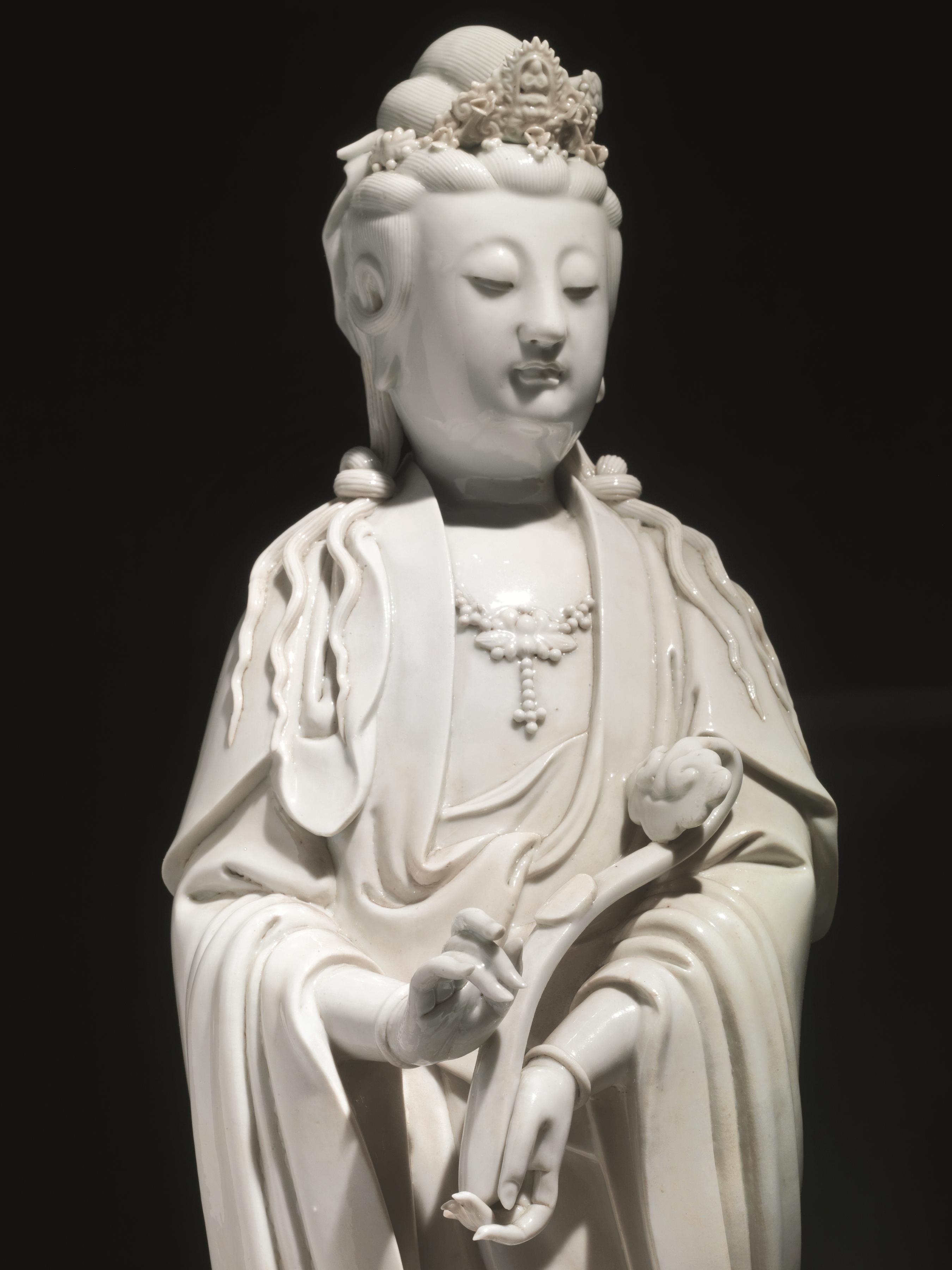 Scultura Cina sec. XIX, in porcellana bianca Dehua, raffigurante Guanyin...