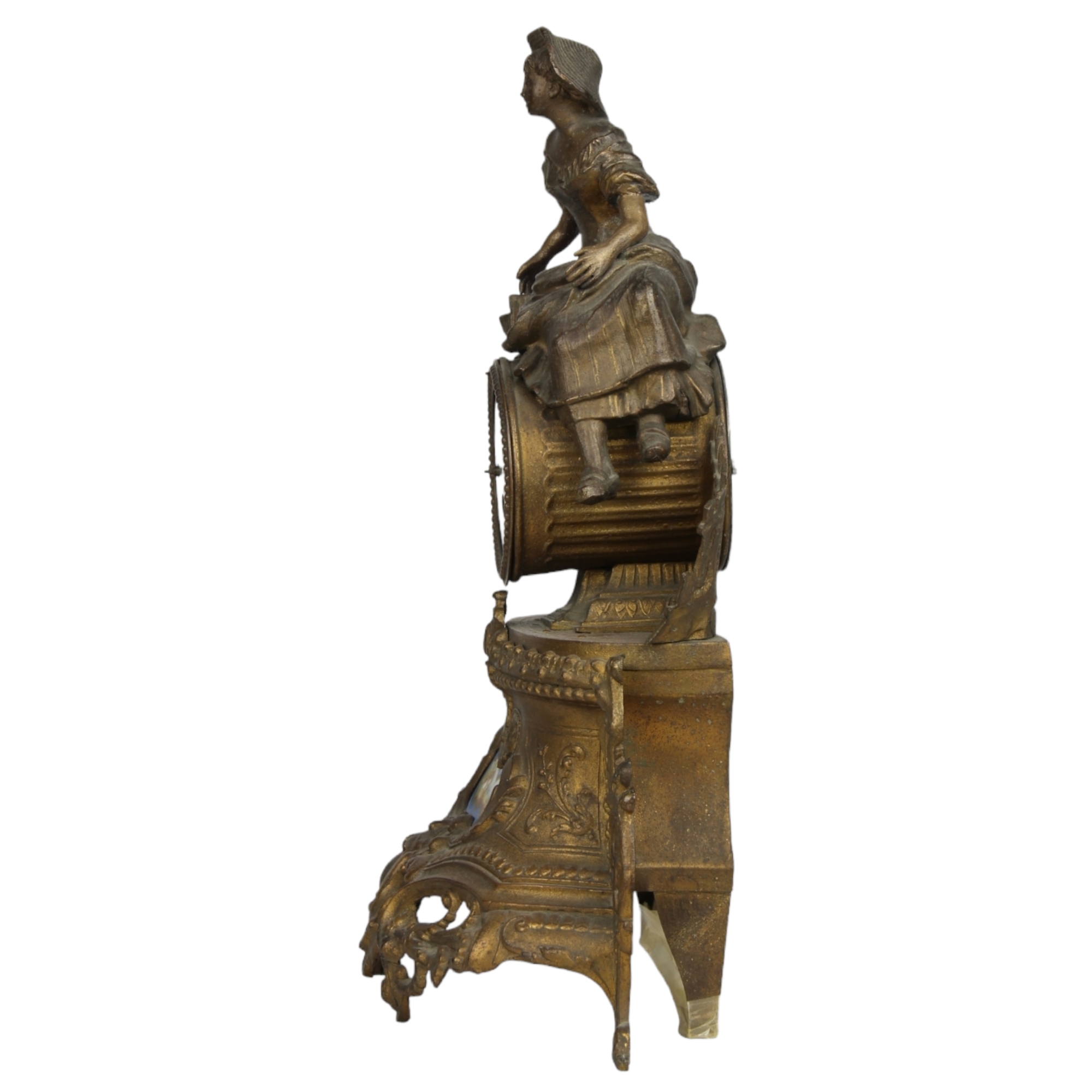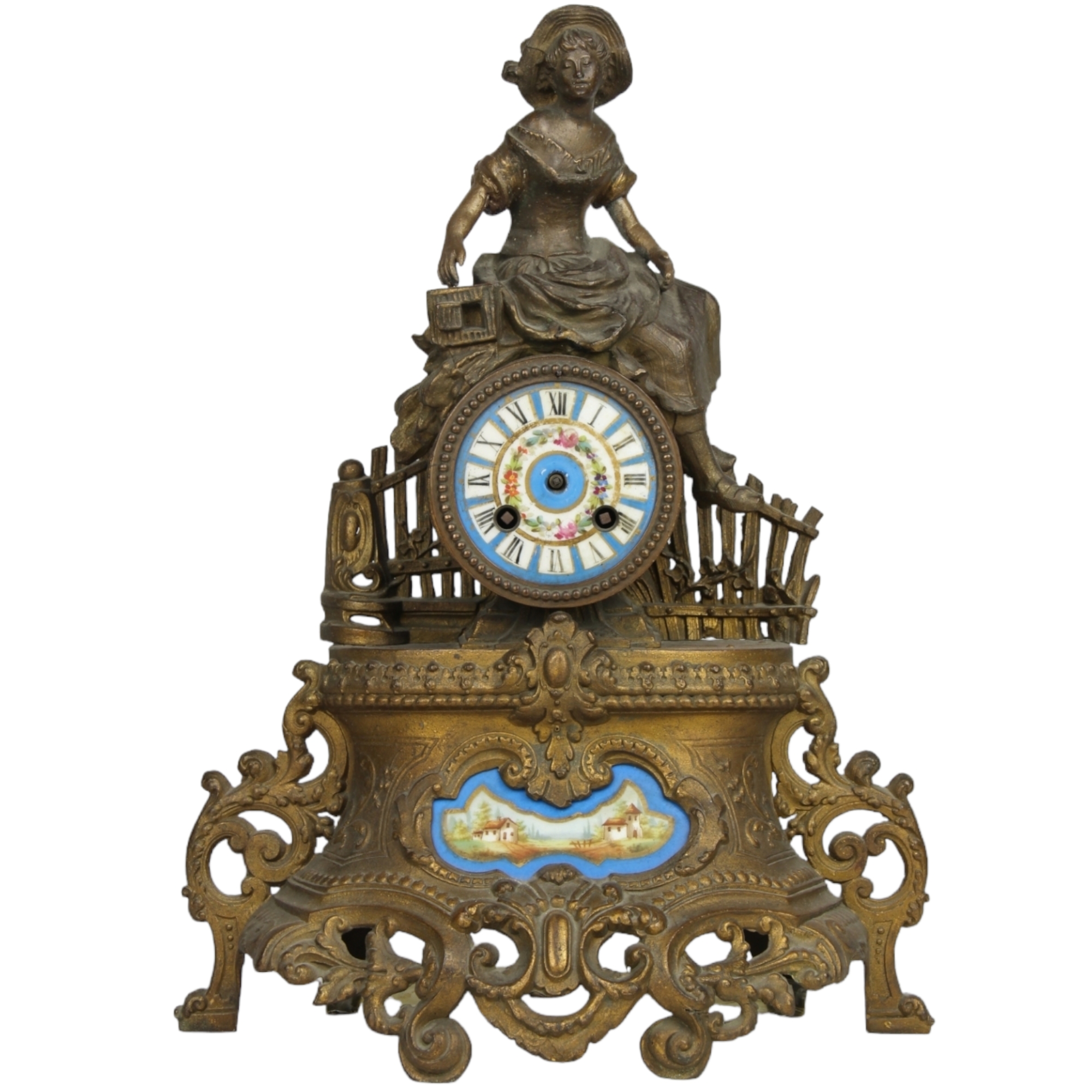 OROLOGIO D'APPOGGIO in antimonio con placche in porcellana di Sevres. XIX secolo Francia h cm 40 x 30 x 14