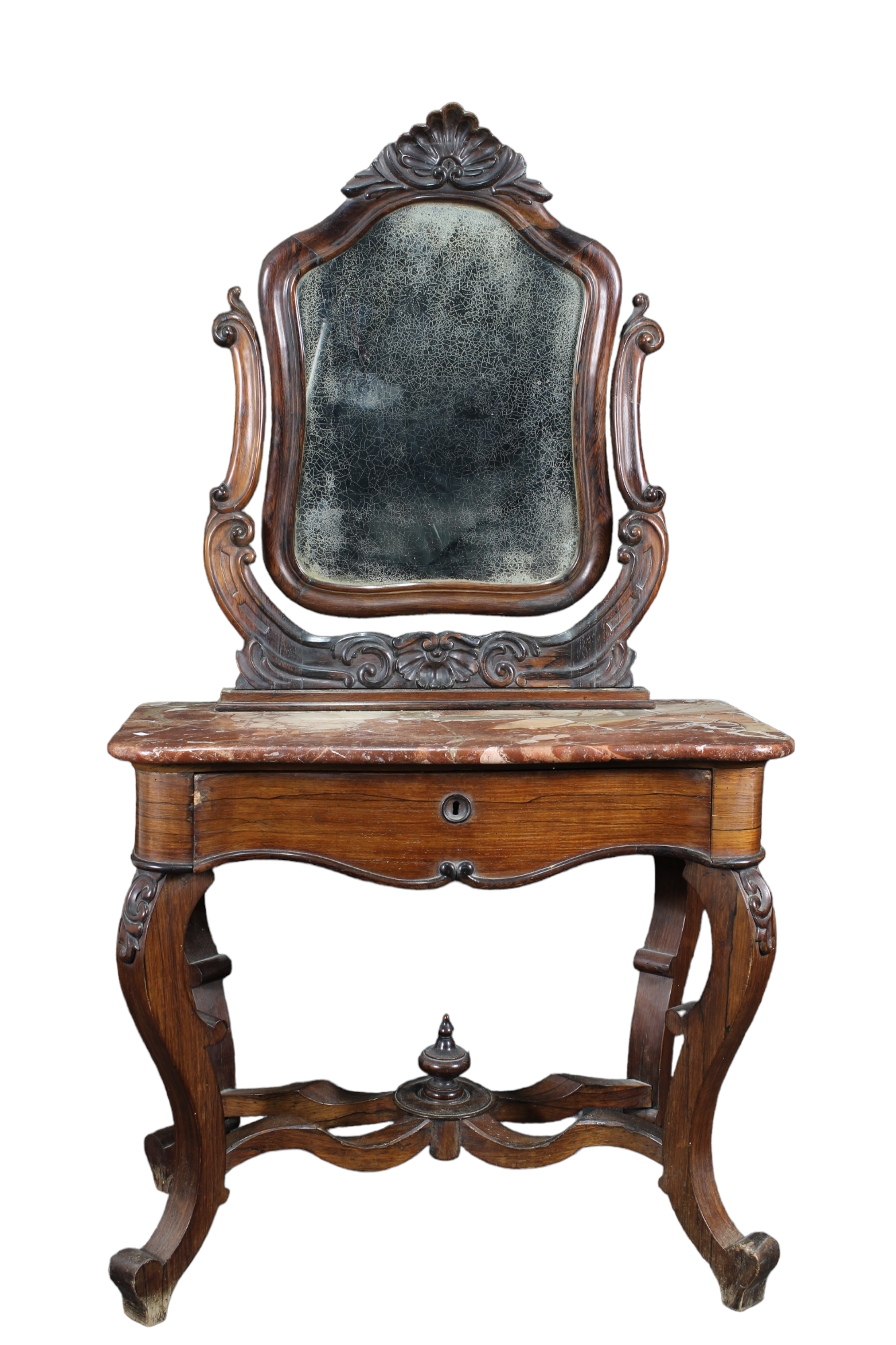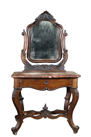 TOLETTA IN PALISSANDRO CON PIANO IN MARMO SPECCHIO BASCULANTE sotto piano con cassetto e gambe arcuate XIX secolo Napoli h cm 173 x 93 x 48