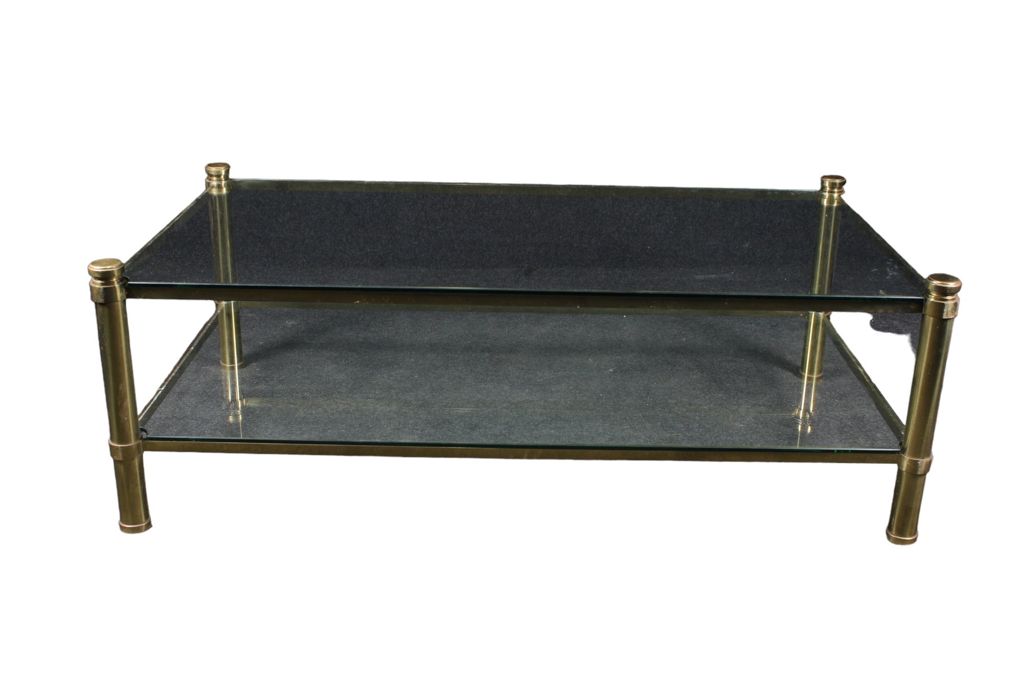 TAVOLINO DA SALOTTO in ottone e piano in vetro h cm 46 x 134 x 73 anni 90
