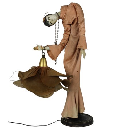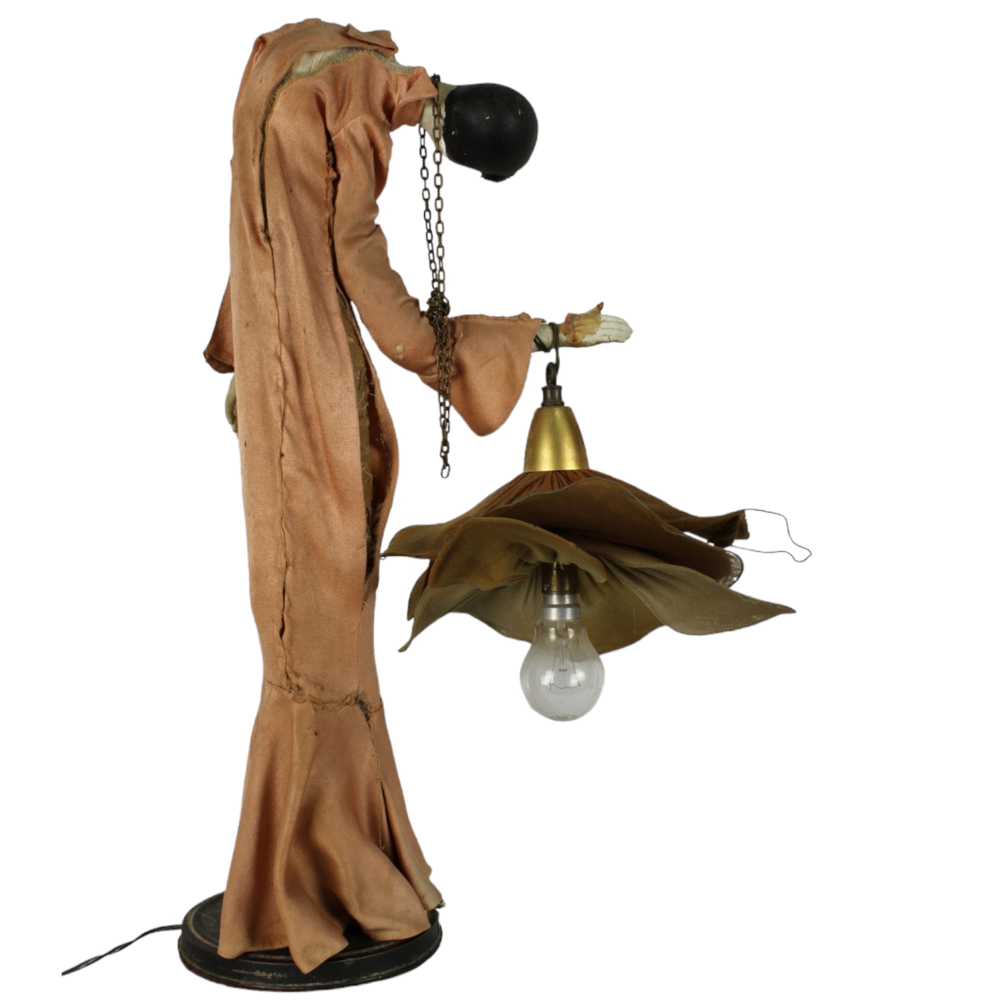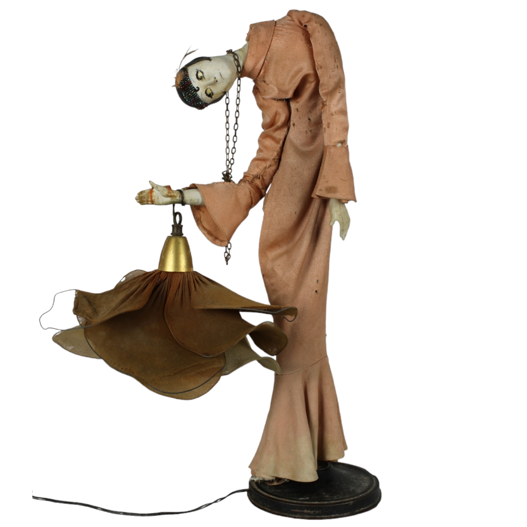 LAMPADA DA TAVOLA in porcellana e abito di raso periodo Liberty italiano h cm 55 x 40