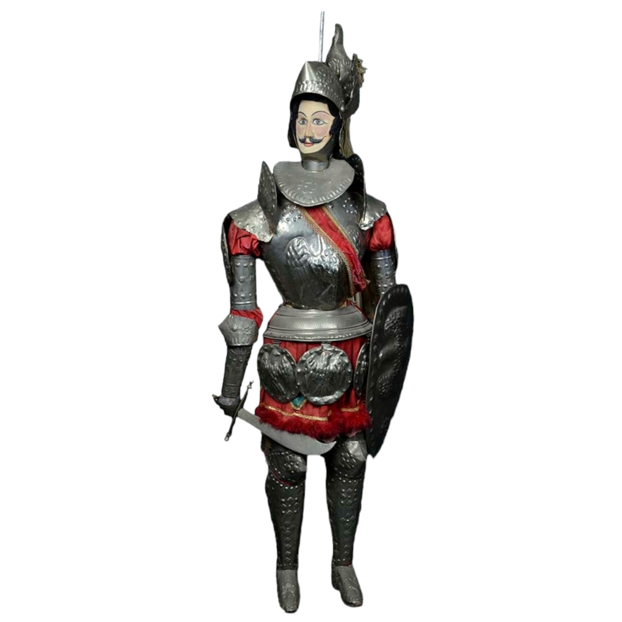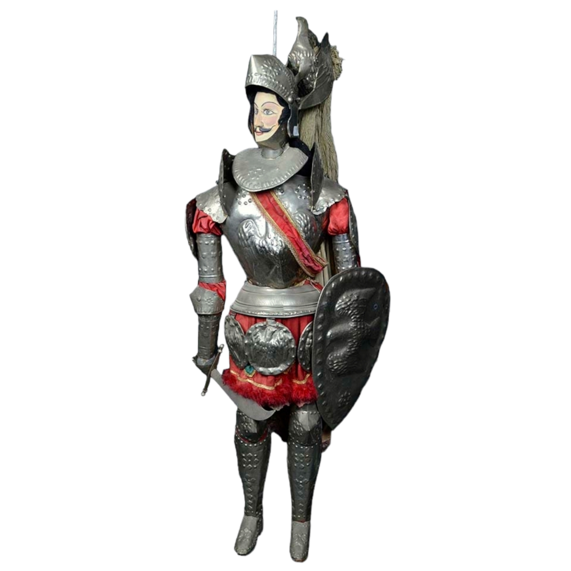 PUPO SICILIANO RAFFIGURANTE ORLANDO arti e testa in legno armatura in metallo Sicilia fine 800 primi 900 h cm 128/ con gancio h cm 175