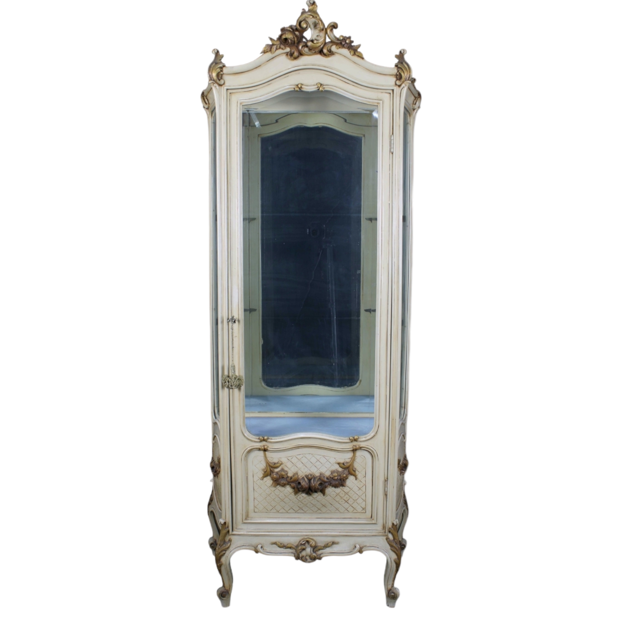 VETRINETTA in legno laccato e a fondo verde e finemente dipinto Primi '900 manifattura siciliana h cm 194 x 74 x 38