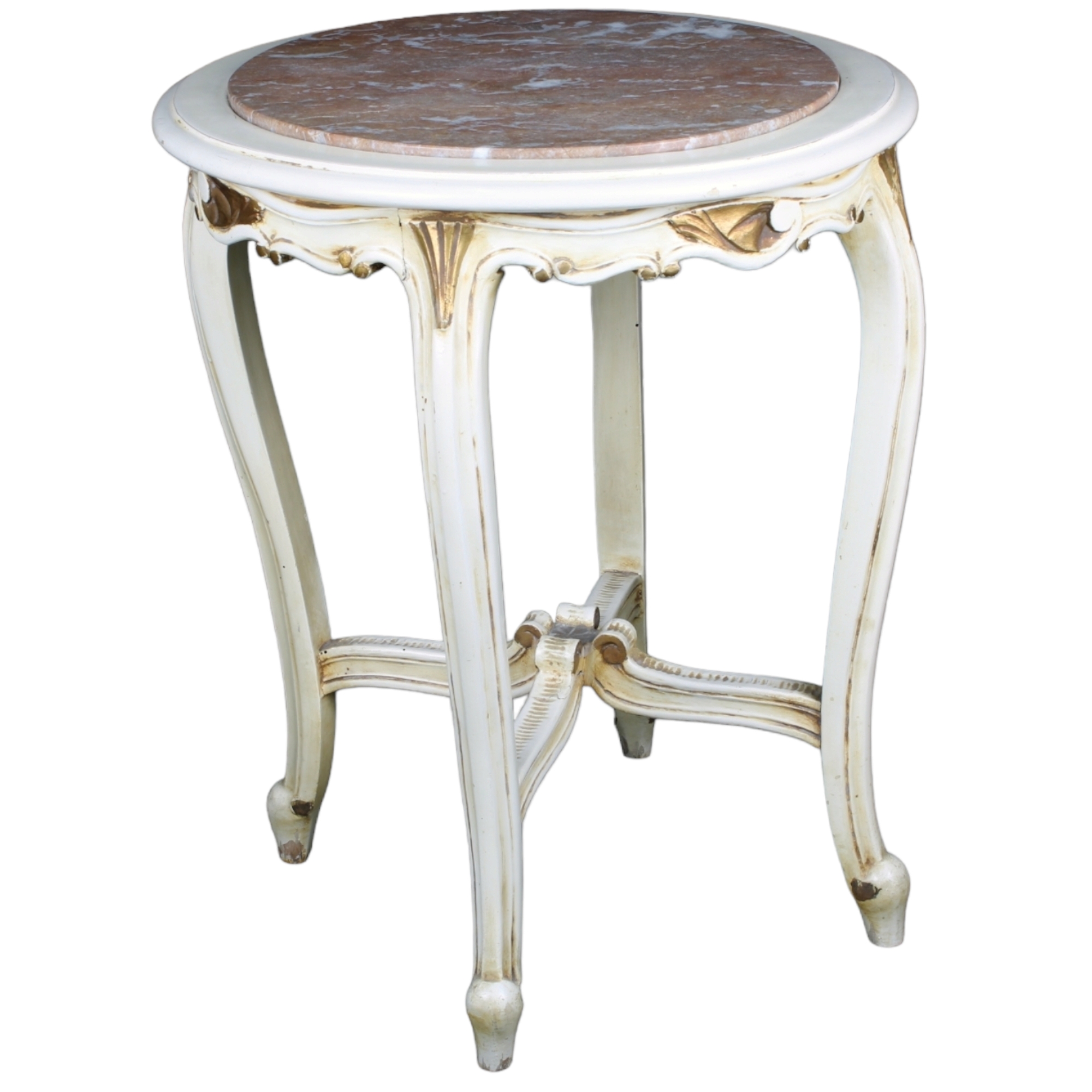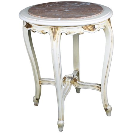 TAVOLINO TONDO in legno laccato e lumeggiato da dorature, piano in marmo Primi '900 manifattura siciliana h cm 60 x 49