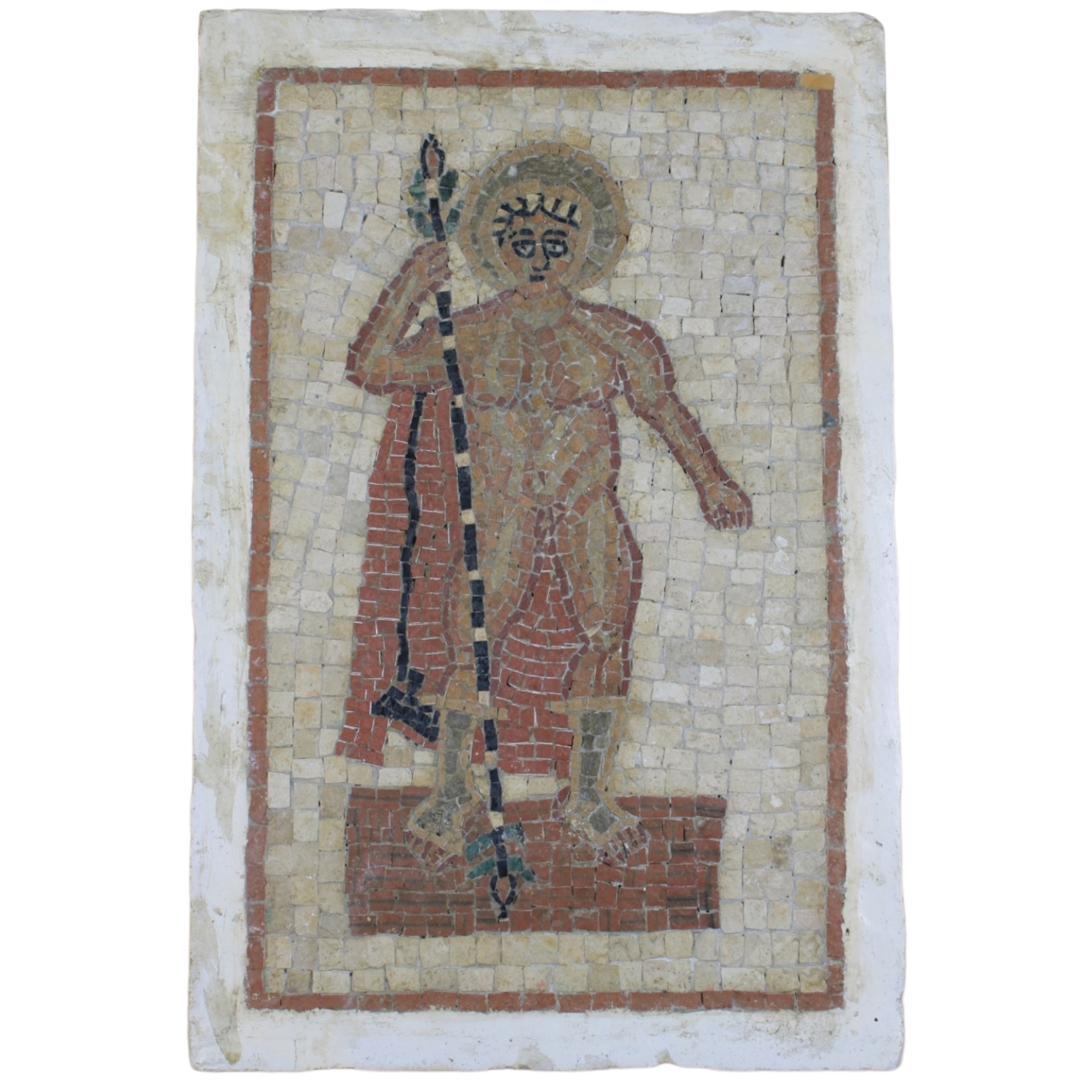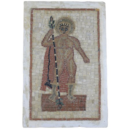 2 PANNELLI MUSIVI Raff Immagine sacra ed un portatore d'acqua. periodo contemporaneo h cm 44 x 26 / h cm 37 x 32
