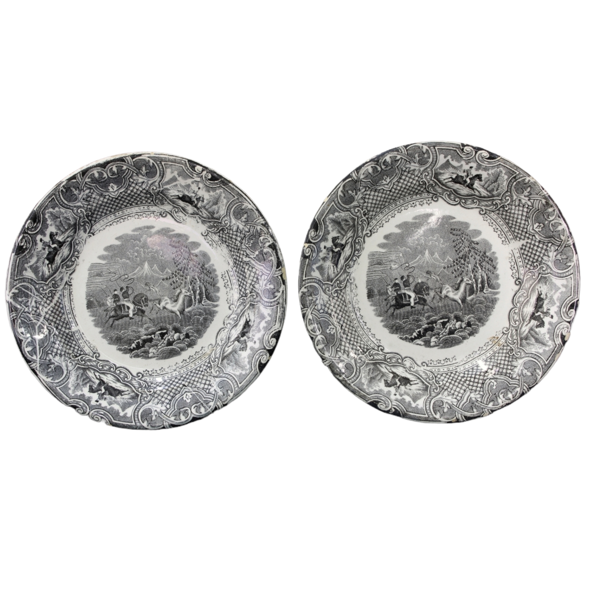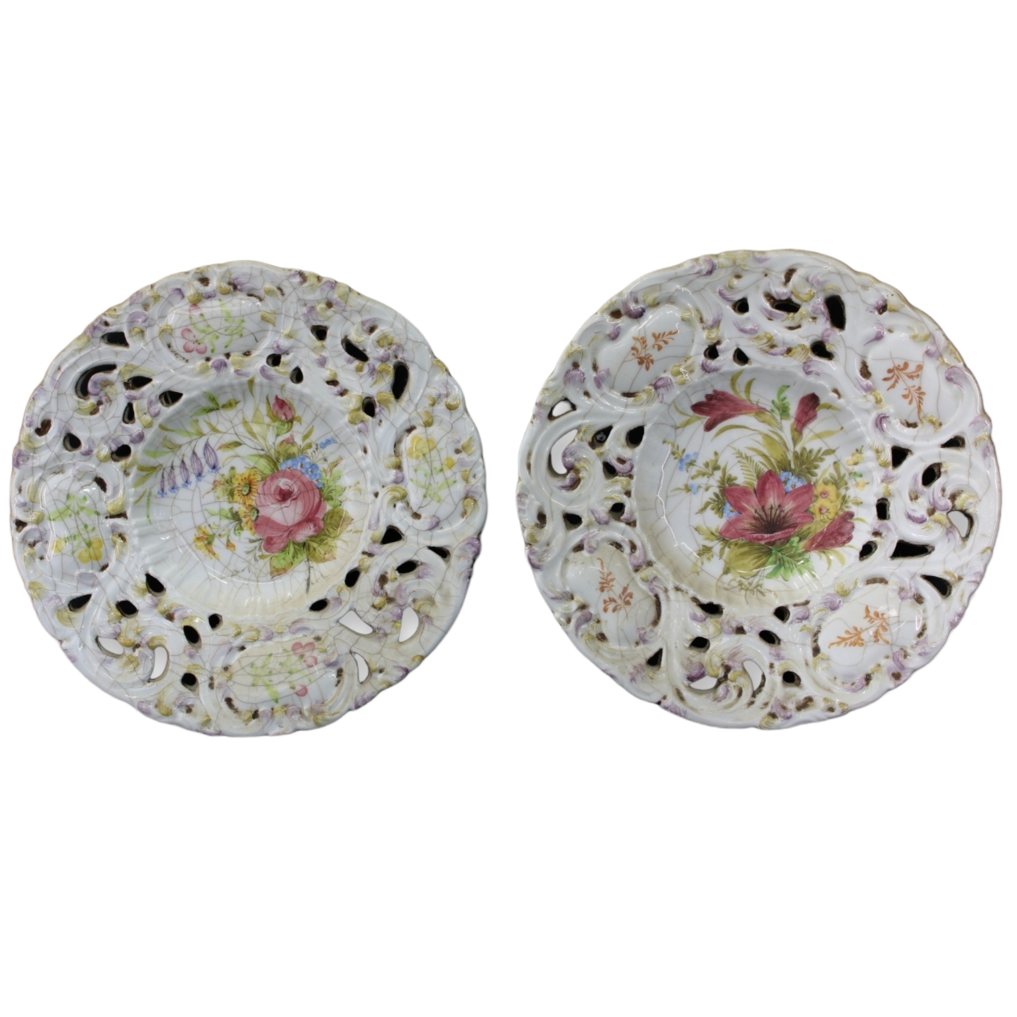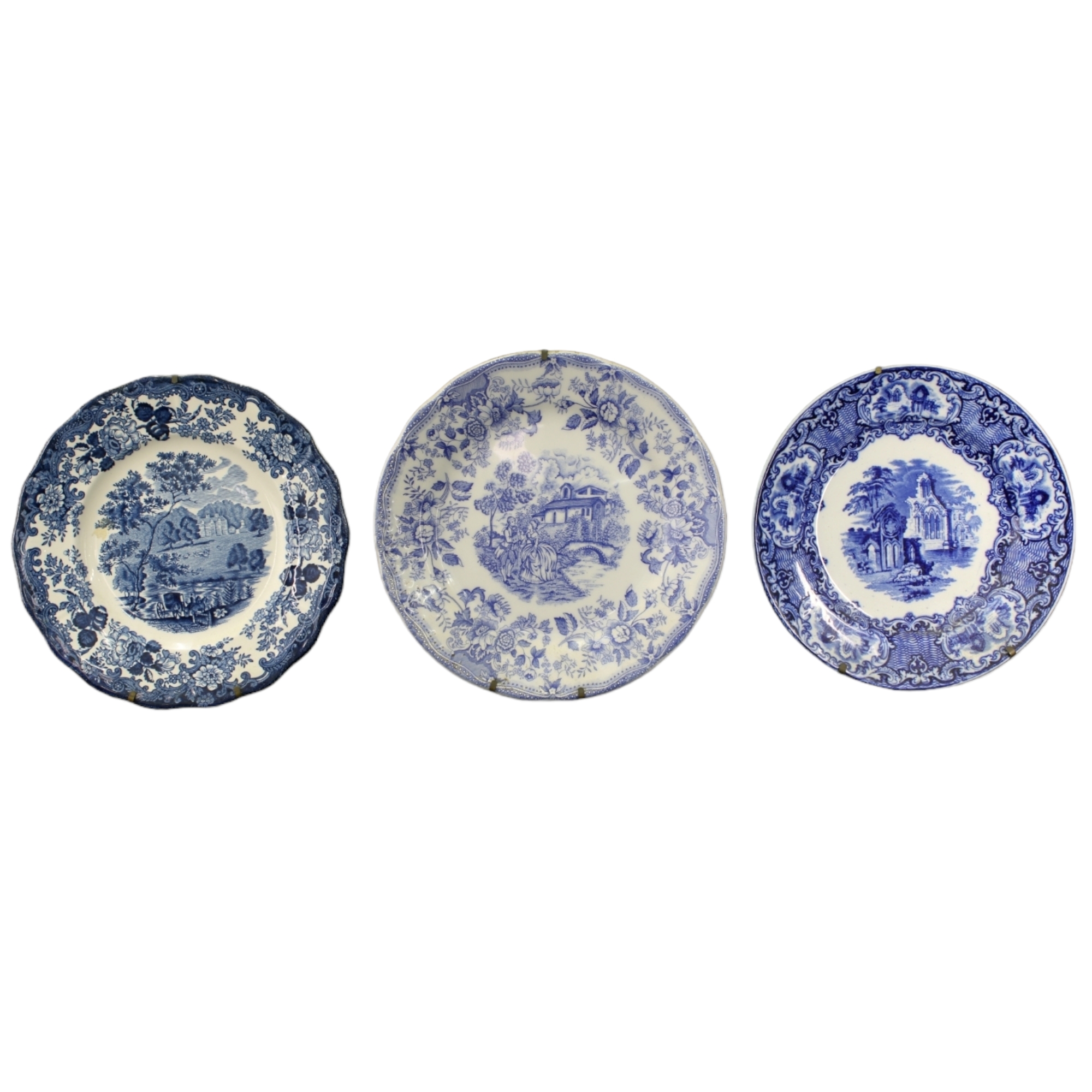 LOTTO DI 7 PIATTI IN CERAMICA PORCELLANATA decorati in monocromia blu, grigia e a fiori XX secolo varie manifatture misure varie